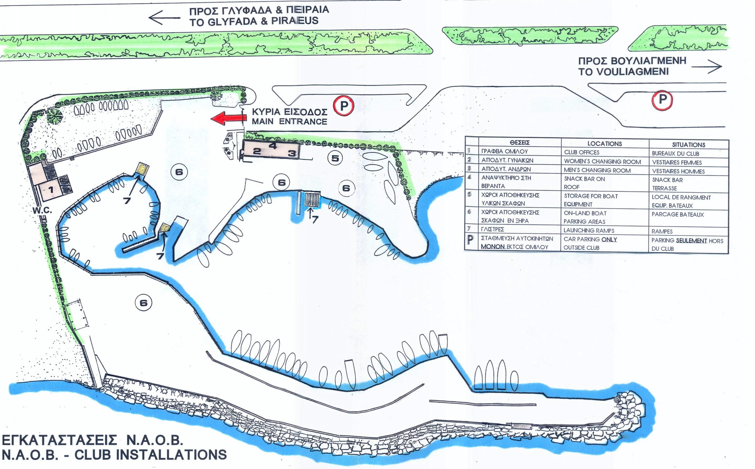 - Μεγάλη πλωτή γλίστρα & ξύλινη προβλήτα, αποκλειστικά για εξυπηρέτηση των ναυταθλητικών σκαφών